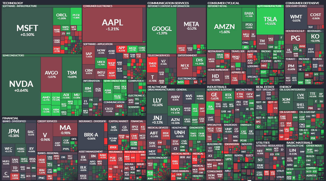 - 애플, 구글 등 시총 상위 종목이 상승하며 지수 방어에 기여했으며, 금융/에너지는 부진했습니다.