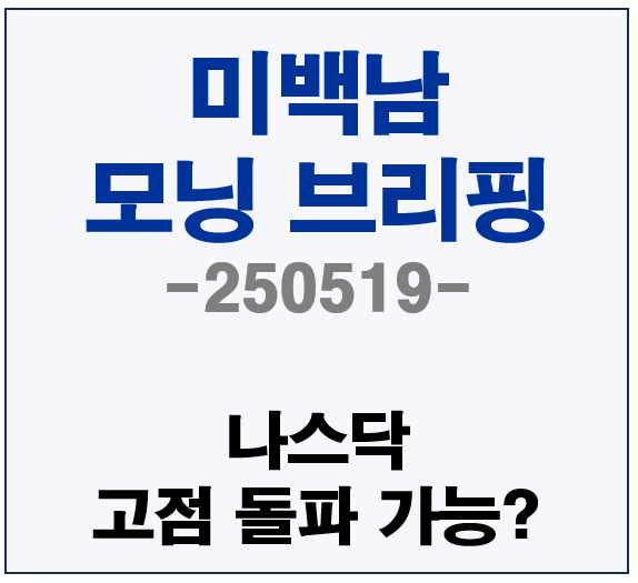 | 《미백남 데일리 모닝 브리핑|2025년 5월 15일 (목)》 - 나스닥 사상 최고치 또 경신… 시장은 AI를 믿는다 (6) | 2025.05.15 |