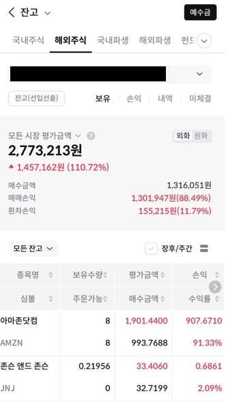 적립식 투자를 하는 동안은 계좌를 전혀 열어보지 않았으며 최근에 미국 주식을 본격적으로 투자하기 위해 어떻게 됐는지 보려고 계좌를 열었더니..........