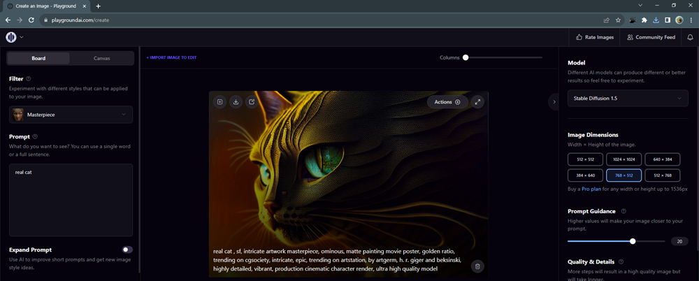 3.왼쪽의 Filter는 본인이 마음에 드는 것을 아무거나 고르면 되며 화면 우측 중간에 있는 Image Dimension은 768*512를