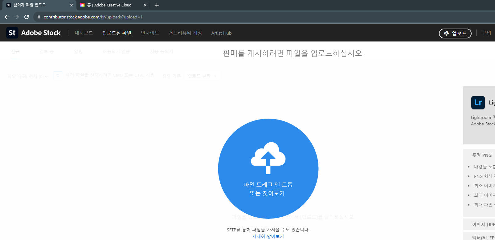 1. 검색창에 Adobe Stock의 기고자 페이지에 접속