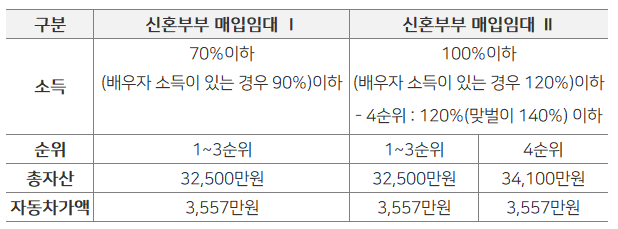 - 신혼부부 매입임대 Ⅰ : 시중 임대료의 50% 이내