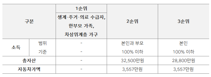 2) 선정 기준 : 미혼 무주택자로서 소득·자산기준을 충족하는 청년