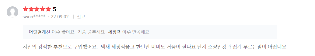 세정력이 좋고 두피 건강에 좋다는걸 알 수가 있네요
