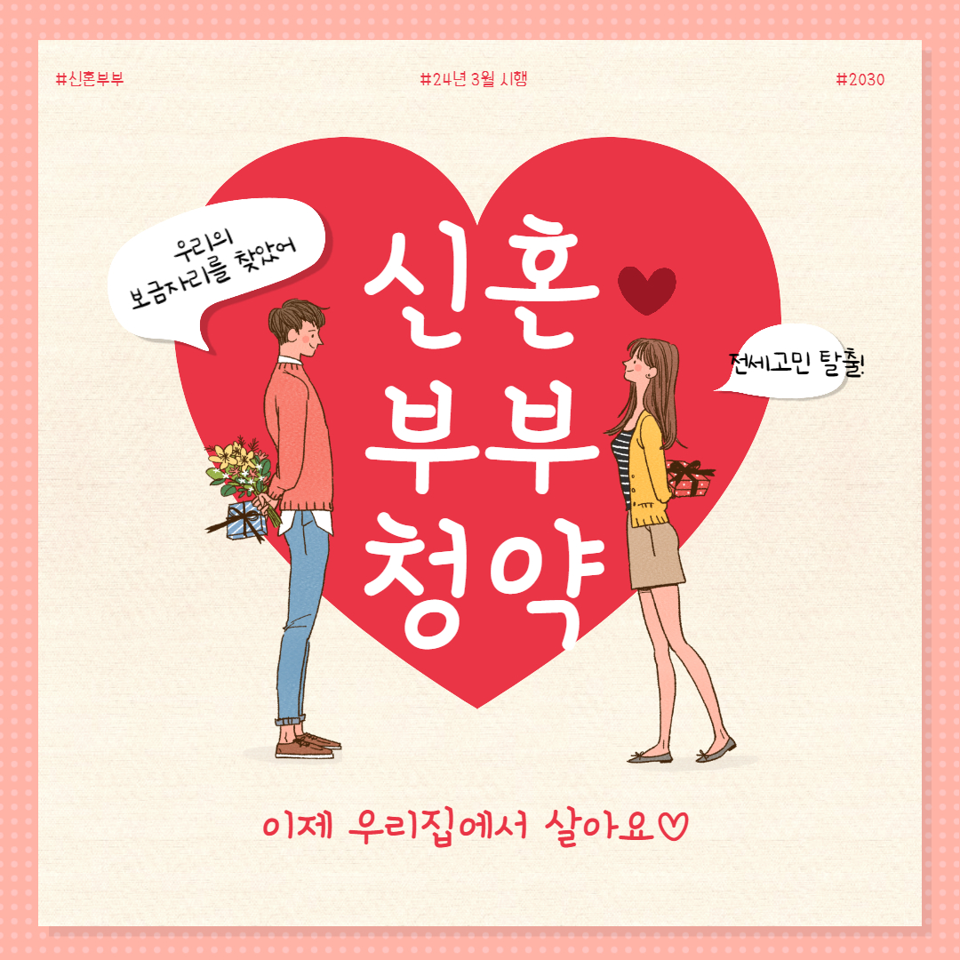 정부가 24년 3월부터 주택청약 시의 신혼부부를 위한 청약가점제도를 개선하고, 저출산 극복을 위한 주거지원 대책을 발표했습니다. 이에 따라 신혼부부에게 불리한 조건이 개선되면서 주택 마련에 대한 기회와 혜택이 확대되고 있습니다.